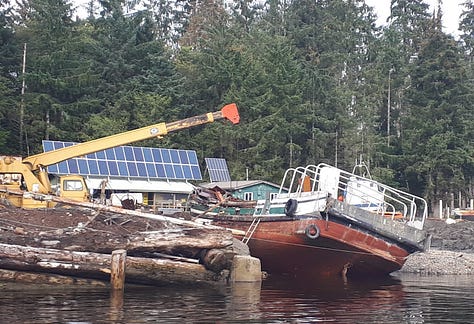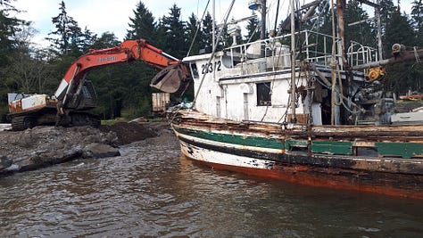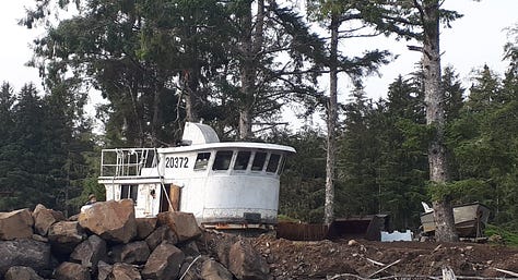 Over the years the shipyard owner in ‘Rupert cared for Dad's boat. It came out of the water every year for inspection, but most everything else was left to the elements. From time to time I suggested Dad sell the boat. For a number of reasons (fishing licences, nostalgia, emotion) he held off selling her. Then the shipyard was sold and the new owners wanted the boat gone. They had plans and those plans did not include old decaying fishboats owned by old men. The pandemic put everything in standstill for a couple years. But then this past year I convinced Dad it was time to sell the boat.