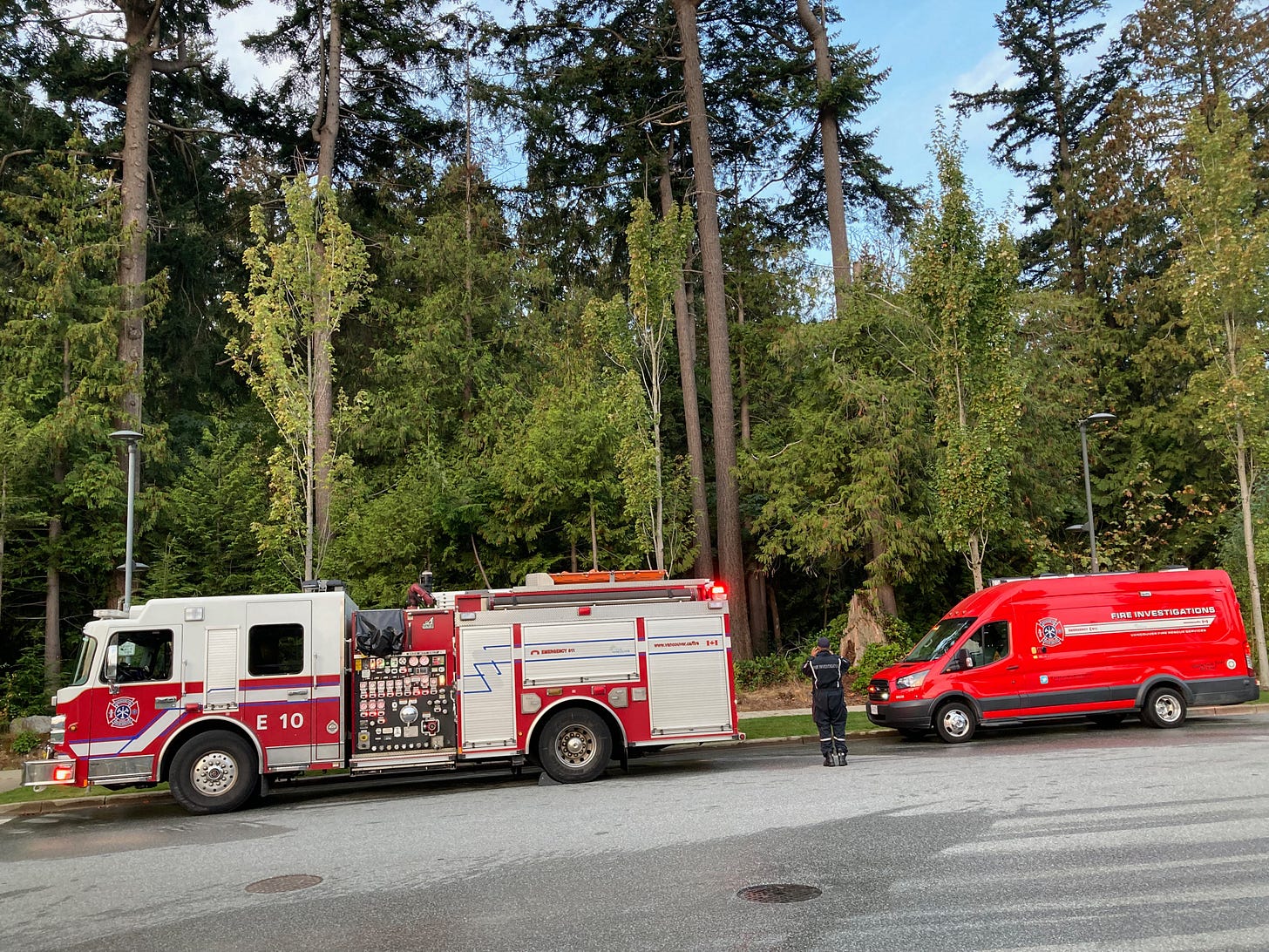 Living in and alongside an urban forest brings a lot of positives. One of the negatives is the potential for fires. Over the years I have lived on campus there have been the occasional woodland fire. In summer 2021 a 150m fire broke out on the hill side of Pacific Spirit Park. In 2018 there was a fire that burned a large tree near an informal camp site. Last Friday morning (Oct. 7, 2022) Vancouver Fire Department responded to a small brush fire near the artificial eagle nest in Wesbrook Place. It appears a campfire was the cause.